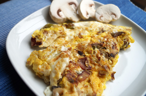 This colorful omelet blends vegetables, eggs, bacon, and small amounts of butter and is very simple to put together. It is a great breakfast meal on busy mornings and a tasty upgrade to traditional omelet. This is a savory, quick-to-make breakfast or brunch. The recipe is easy to follow, whether you are a novice or all-around cook. Our mushroom and bacon omelet is a fluffy and flavorful dish with a nice texture. Our friends and everyone at home raves for this tasty omelet so we hope you enjoy it equally!